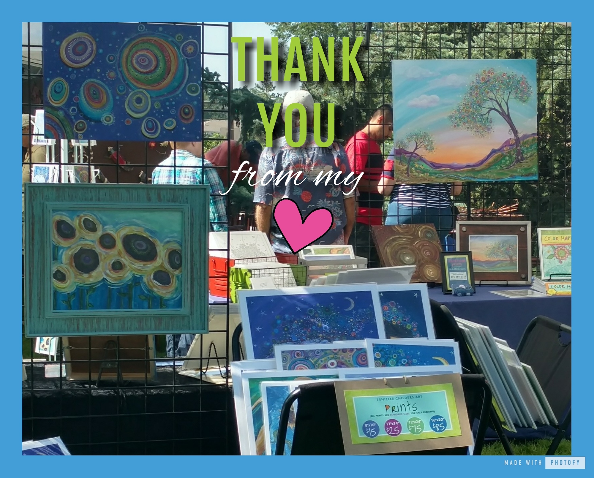 Thank you from my heart to all who came out to Art in the Park over the weekend! It was an incredible show and weekend and I met so many amazing people. I genuinely and wholeheartedly loved getting to talk with everyone one on one. Seeing people connect to my art in such a positive way – seeing them smiling, excited and inspired…is priceless and a profound reminder to me that no matter how difficult this path may sometimes be, it is the path I was meant to be on. It’s who I am and what I was meant to do. Thank you all for inspiring me to want to create more and more art. I can’t wait to get back in my studio because of you.Thank you from my heart! Truly!💜